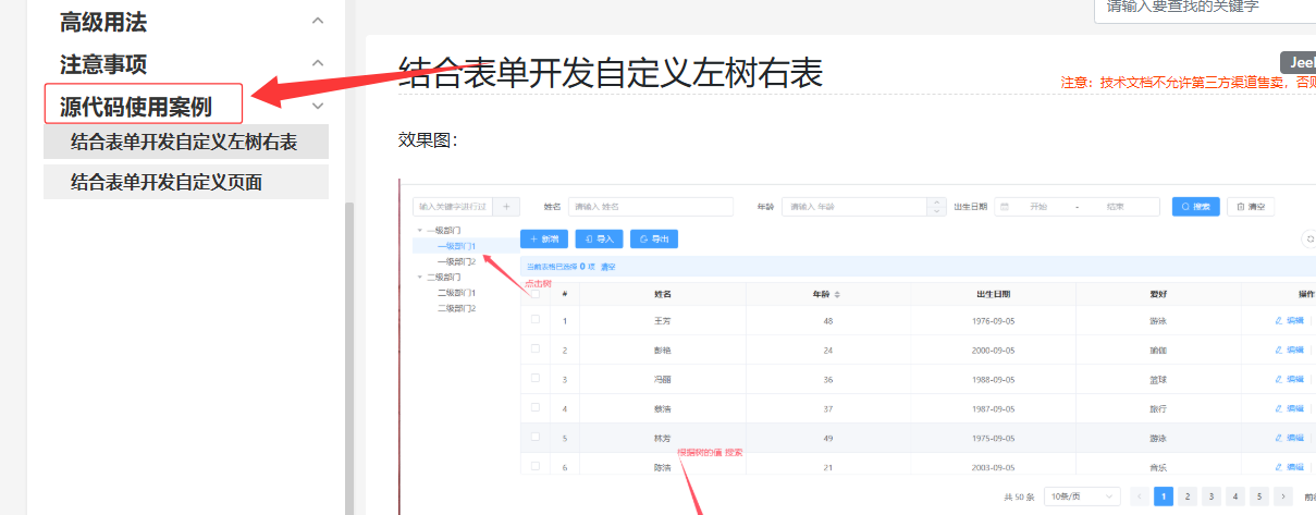 意思说 需要自己开发左侧右树的查询页面,然后后台接口也是需要自己开发 是吧