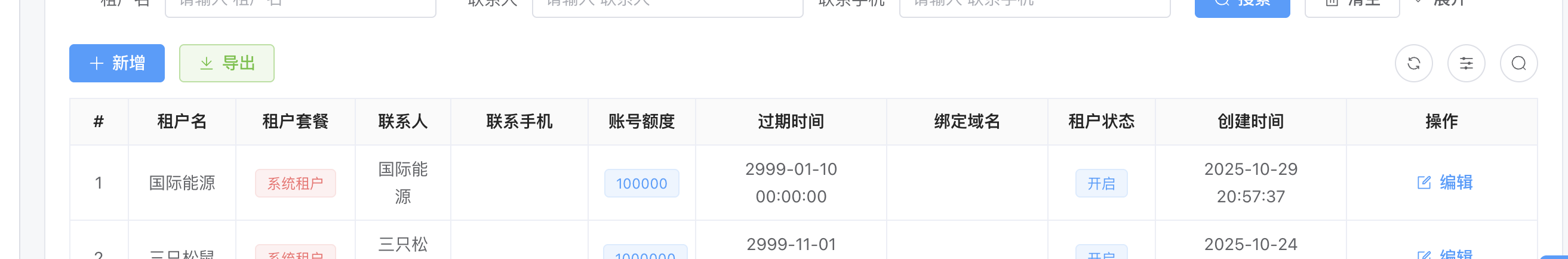 1.我已经有了一个租户如图: