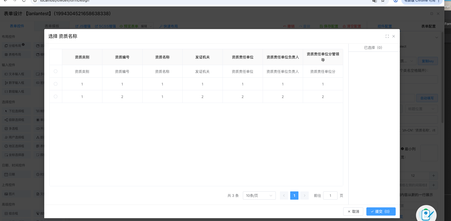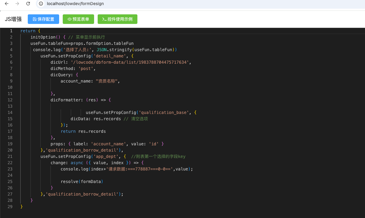 表格选择框要过滤掉没有审批通过的数据,我的代码是这样写的但没有生效。我不能用 表单开发 里面的查询属性,因为列表里面是要显示所有字段的。只有在表格选择框才要过滤掉数据。我应该怎么写