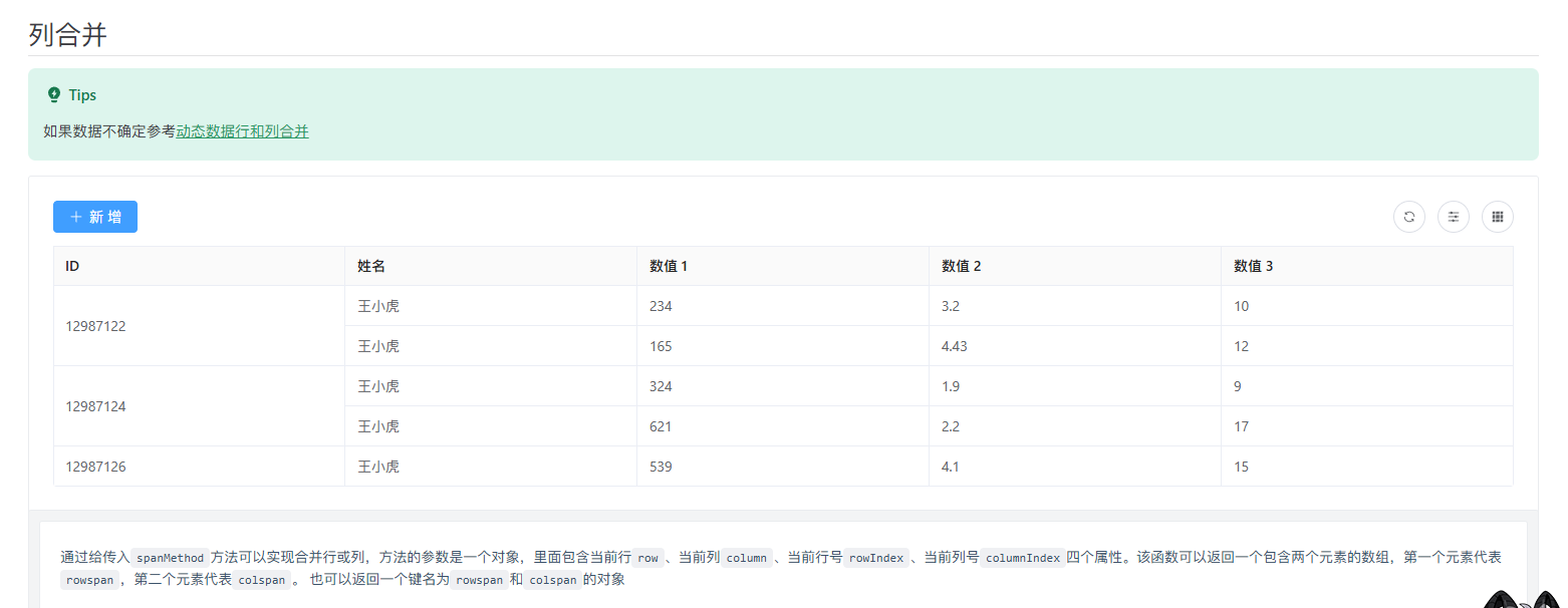 表单开发,如何配置表格合并行列