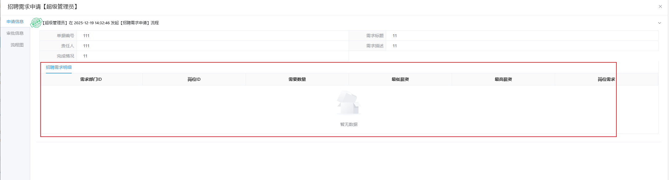 流程的需求申请详情,看不到子表的信息,这个怎么处理