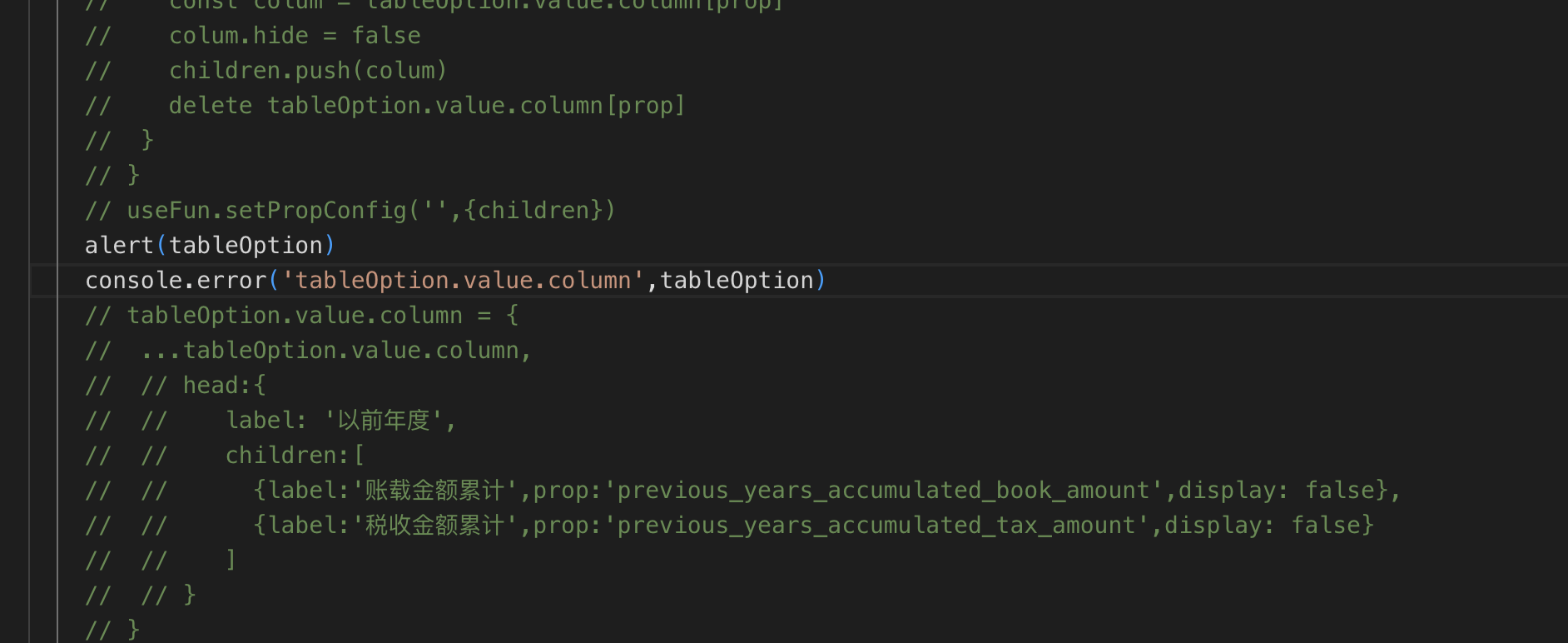 JS增强里面使用 tableOption 只要一添加 就没有任何反应了