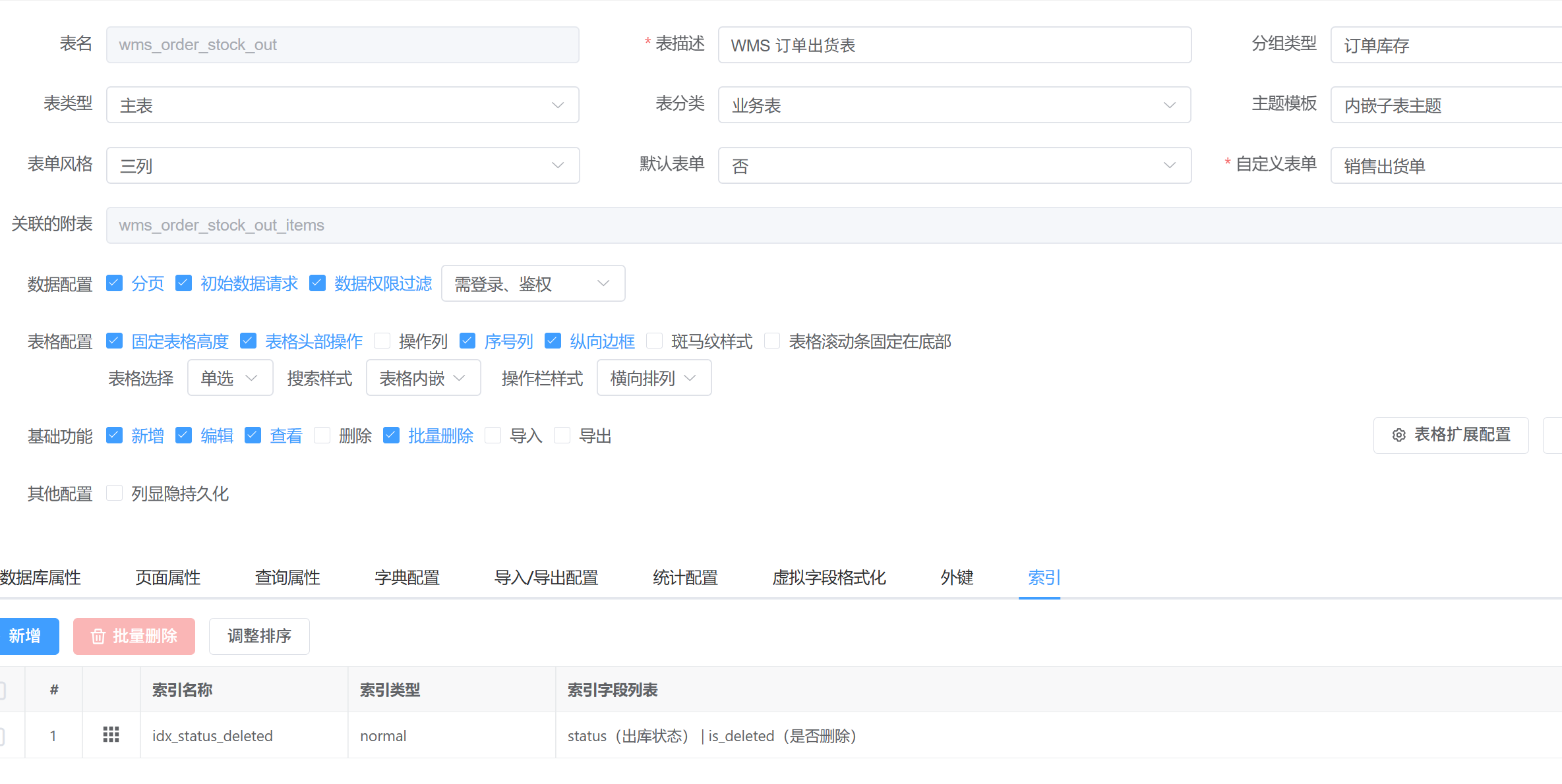 如图,每次设置完索引后保存退出会导致该表单的分组类型和自定义表单的设置丢失