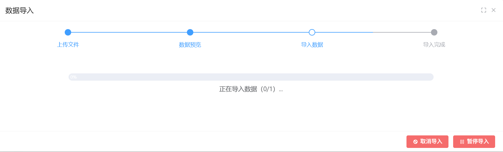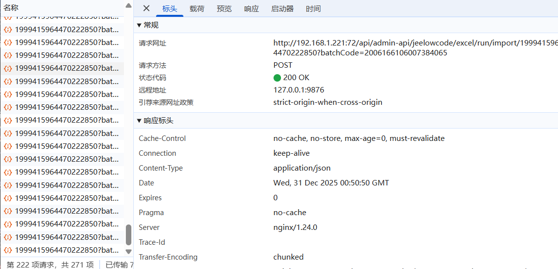 数据预览没有问题,导入数据一直卡在这个页面,f12看接口一直刷新,用的表单自带的导入,没有做js增强