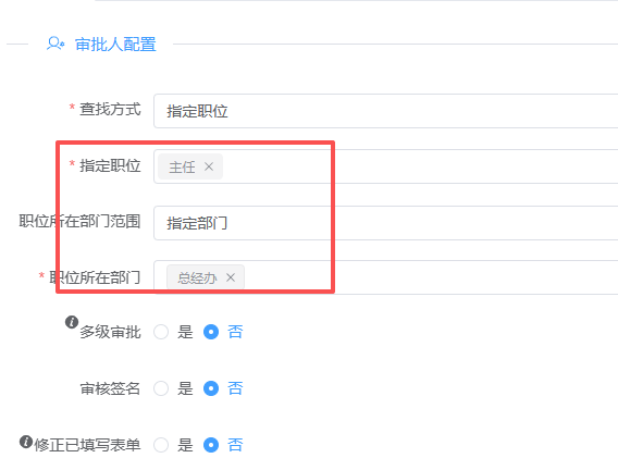 流程中指定部门和职位,会将部门所有人员都设置成审批人