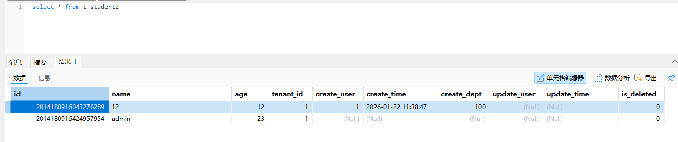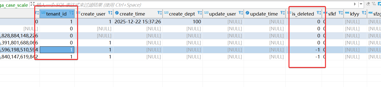 经测试,在INSERT 语句中,带有TENANT_ID字段时,会将IS_DELETED设置为-1.