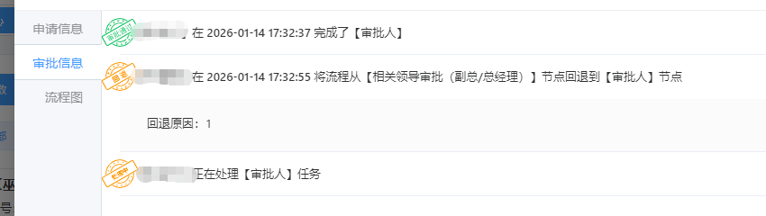 我处理了回退,流程已经回退到了上一个审批人。但是在我的已处理里面看不到处理的流程记录