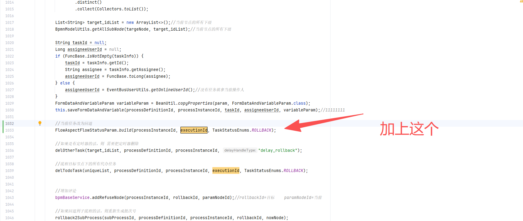 FlowAspectFlowStatusParam.build(processInstanceId, executionId, TaskStatusEnums.ROLLBACK);