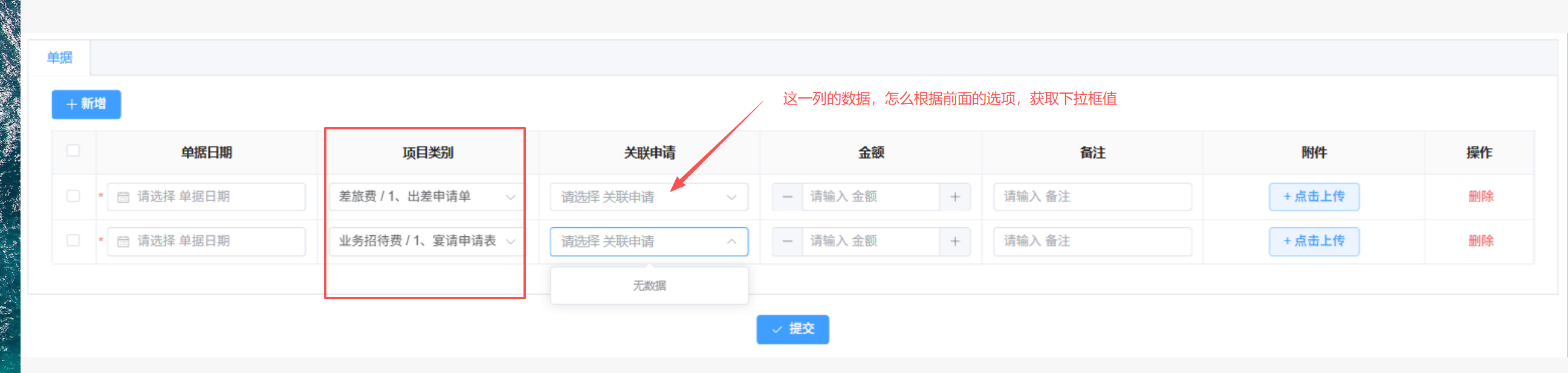 TAB 子表的表格列,怎么根据前面一列的值,动态获取下拉值