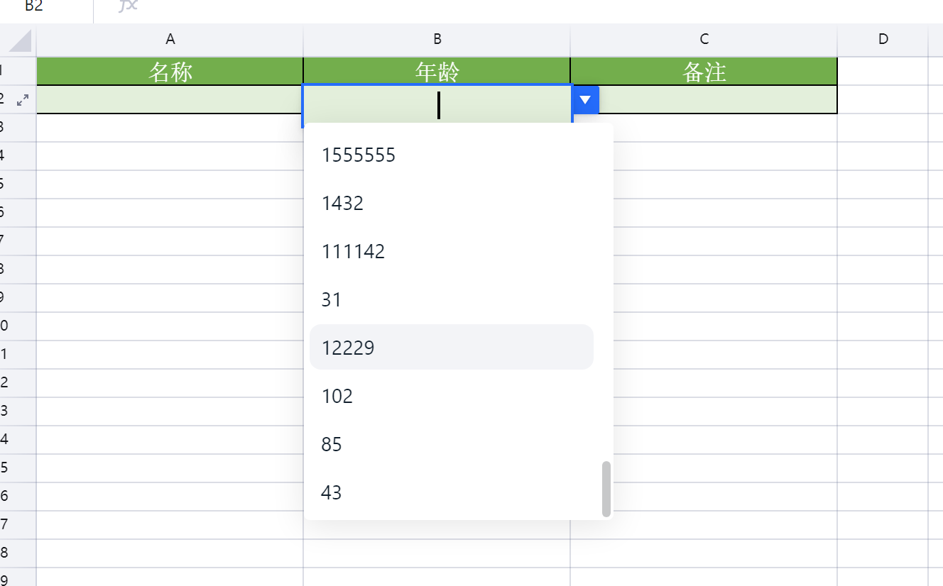 导入功能下载模版,列头下拉不显示问题