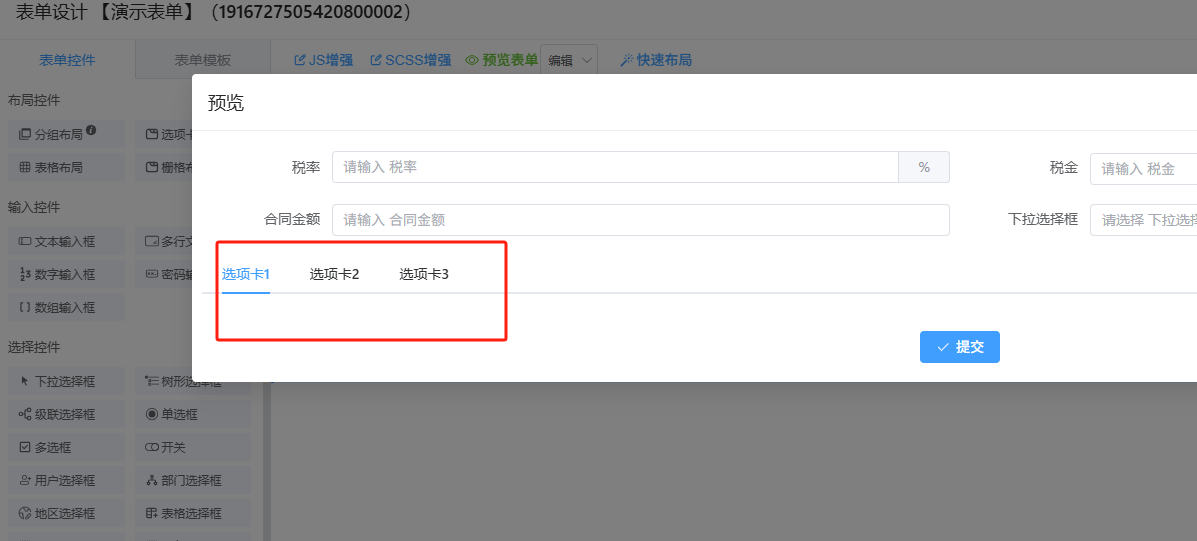 自定义表单tabs选项卡布局