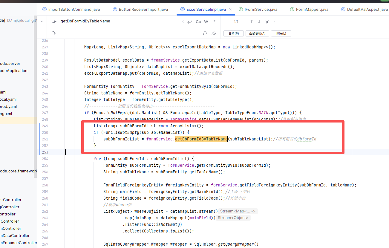 List<Long> subDbFormIdList =new ArrayList<>();if (Func.isNotEmpty(subTableNameList)) { subDbFormIdList = formService.getDbFormIdByTableName(subTableNameList);//所有附表的dbformId}