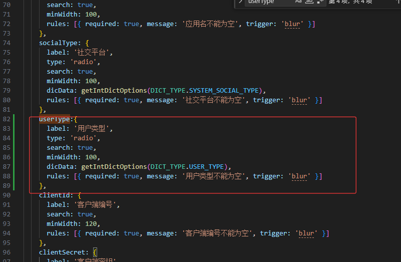 rules: [{ required: true, message: '用户类型不能为空', trigger: 'blur' }]