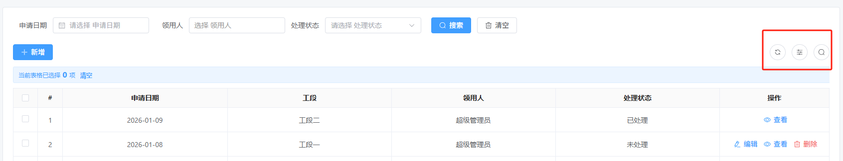 如何隐藏表格头部右侧内容,保留左侧的新增按钮