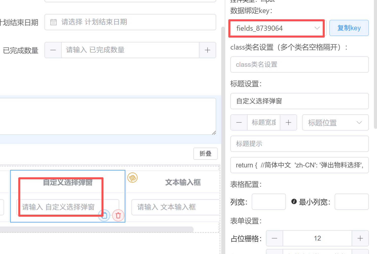 不想要下拉框,我的意思就是像用户选择框那样,在自定义表单里的表格内,某列用文本输入框实现点击事件选择我自己写的弹窗,选择某行数据,确定,set id name值,显示的name 保存id。 有没有方法?