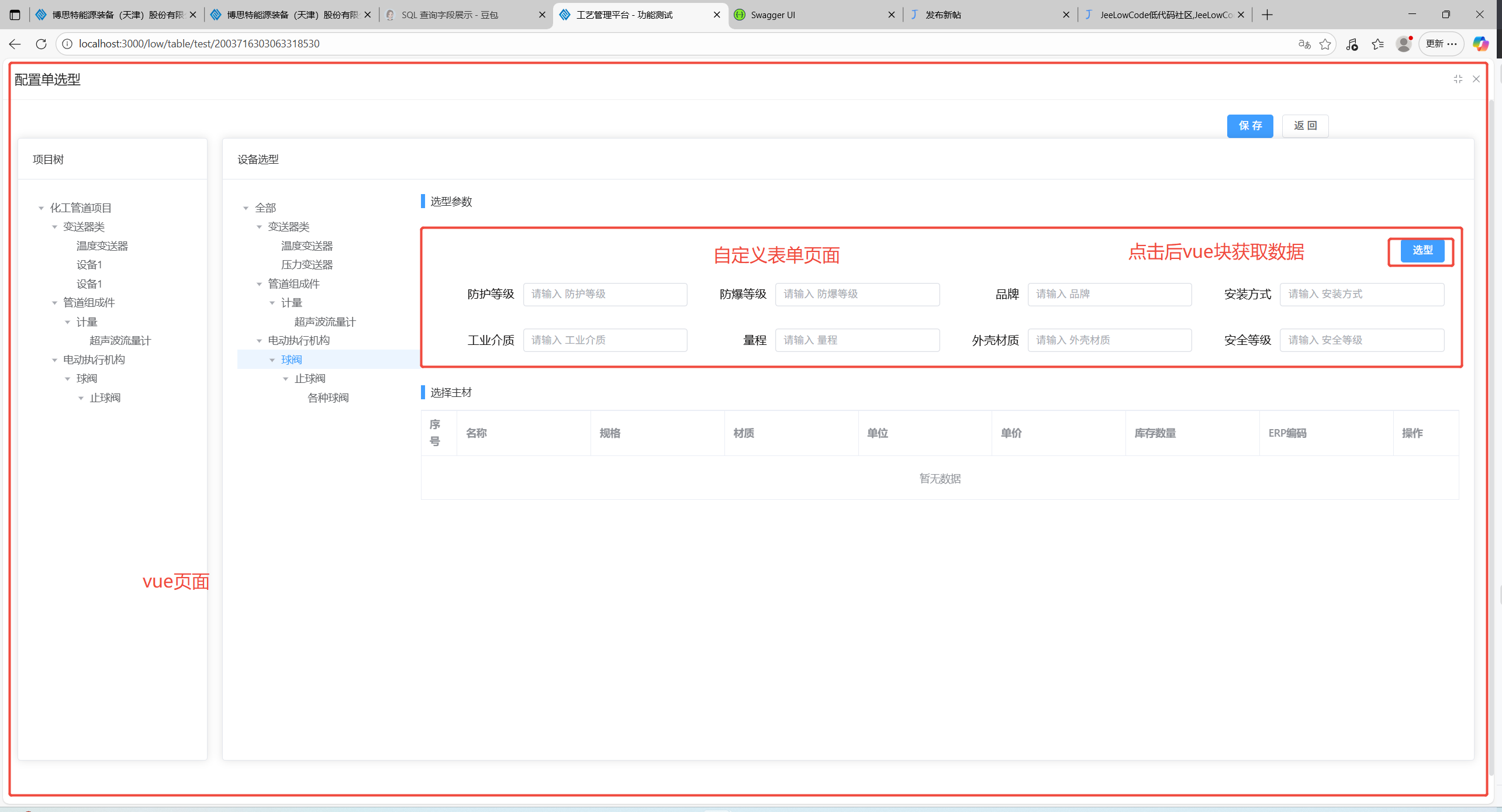 LowForm 可以传递enhanceData属性 你传个vue页面定义的方法进去