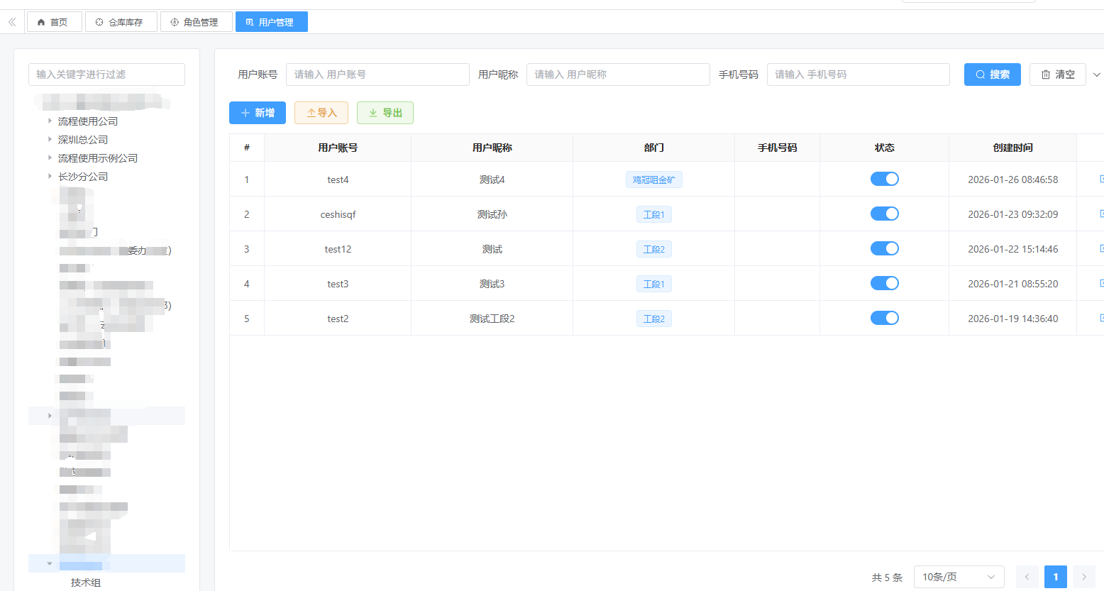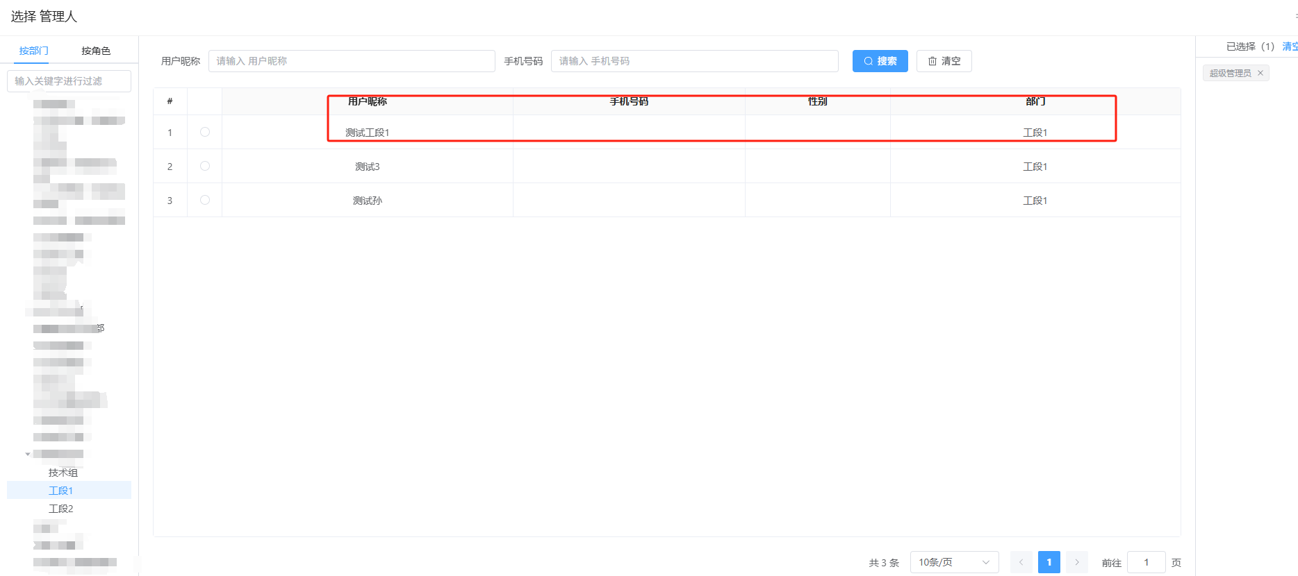 用户管理菜单多部门用户查询不出来