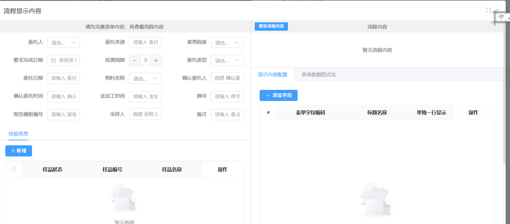 2.开始节点需要绑定一个表单,我自定义了一个表单,选择的是主表,我这个是不是不应该绑定表单的?预览的时候多个这个“新增”按钮,我表单没有设置了,怎么去掉?其实我也想要在审批流中看见这个表单,但是我需要像第一步说的那样去触发,而不是在这个表单中触发工作流。