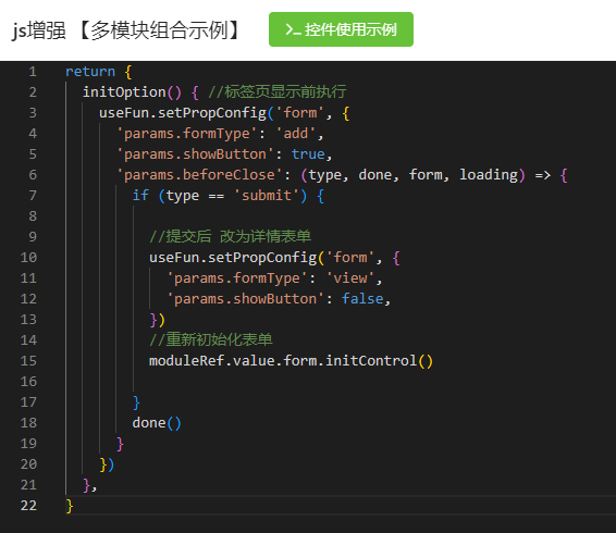 然后通过useFun.setPropConfig修改对应模块的配置的 enhanceData ,模块里面就是props.enhanceData 取值