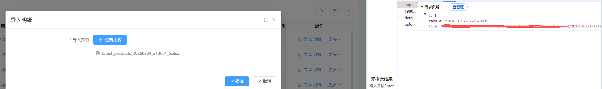 你好,我有个功能到导入一份execl,我自定义了一个页面然后我打开这个页面,点击“提交”,我是希望这个file的参数是一个