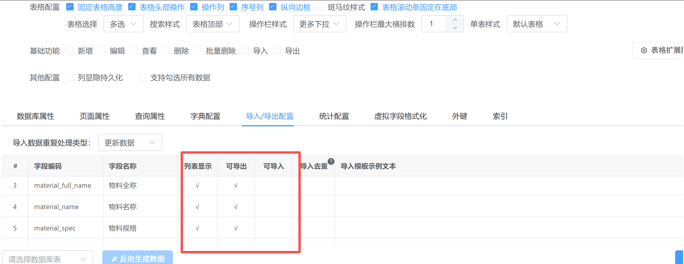 表单开发,导入导出默认设置全部勾选?现在是每个列都要单独勾选 好麻烦