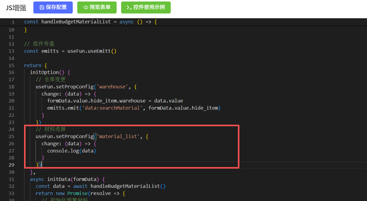 请问自定义组件里面把默认值给改了为什么js增强里面的change时间不生效呢