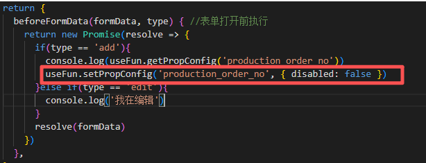 在新增表单中该字段可以正常输入,但是在编辑表单时,需要设置该字段为禁用,这样设置不生效,应该如何修改