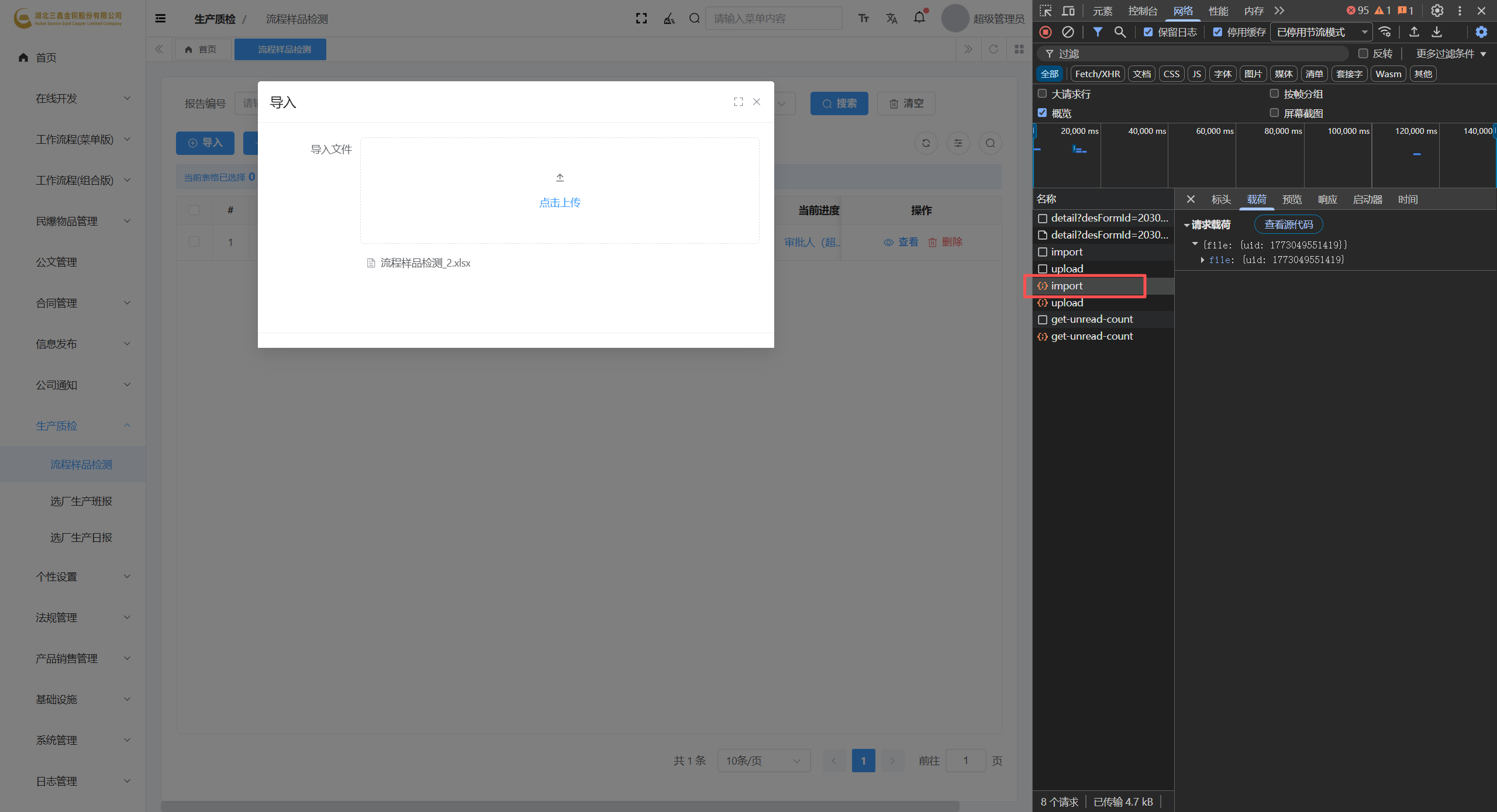 后端写了一个导入接口,但是通过beforeUpload,获取的file不是字节流,上传报错了,这个地方应该怎样上传。
