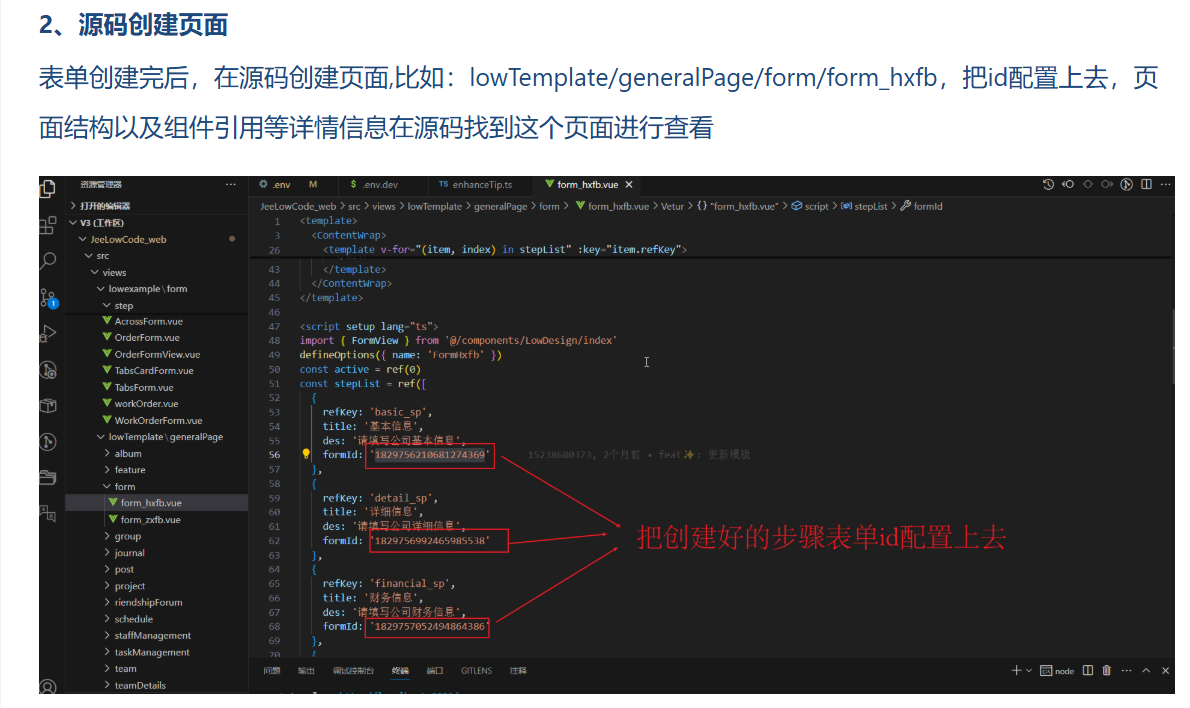 2.在源码创建一个页面,再把第一步的表单id配置好