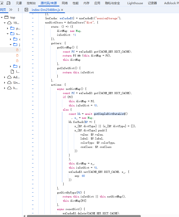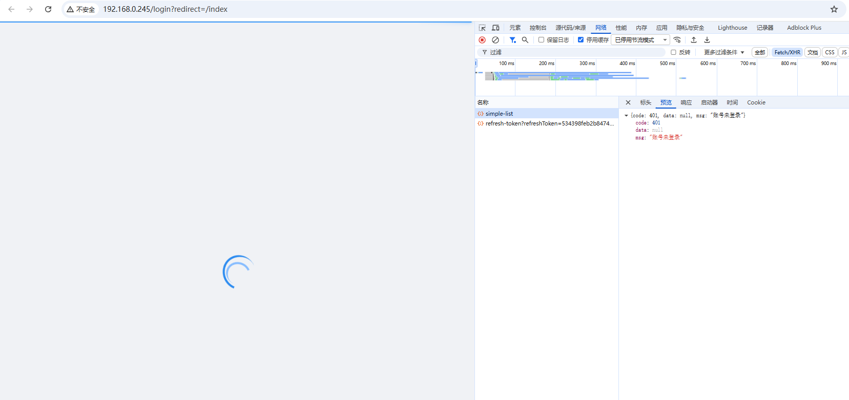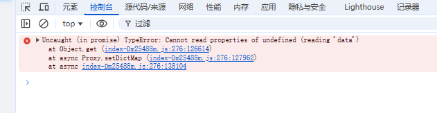 进入登录页会请求admin-api/system/dict-data/simple-list 这个接口, 界面卡在这,控制台有报错, 这里的代码也没有改过,能看出是啥问题吗