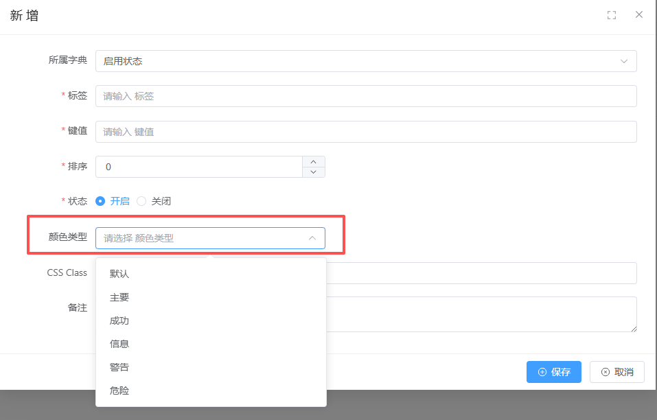 字典管理中,字典的数据可以选择颜色类型,选择不同的选项没有在表单上有任何变化,这个地方的用法是什么?