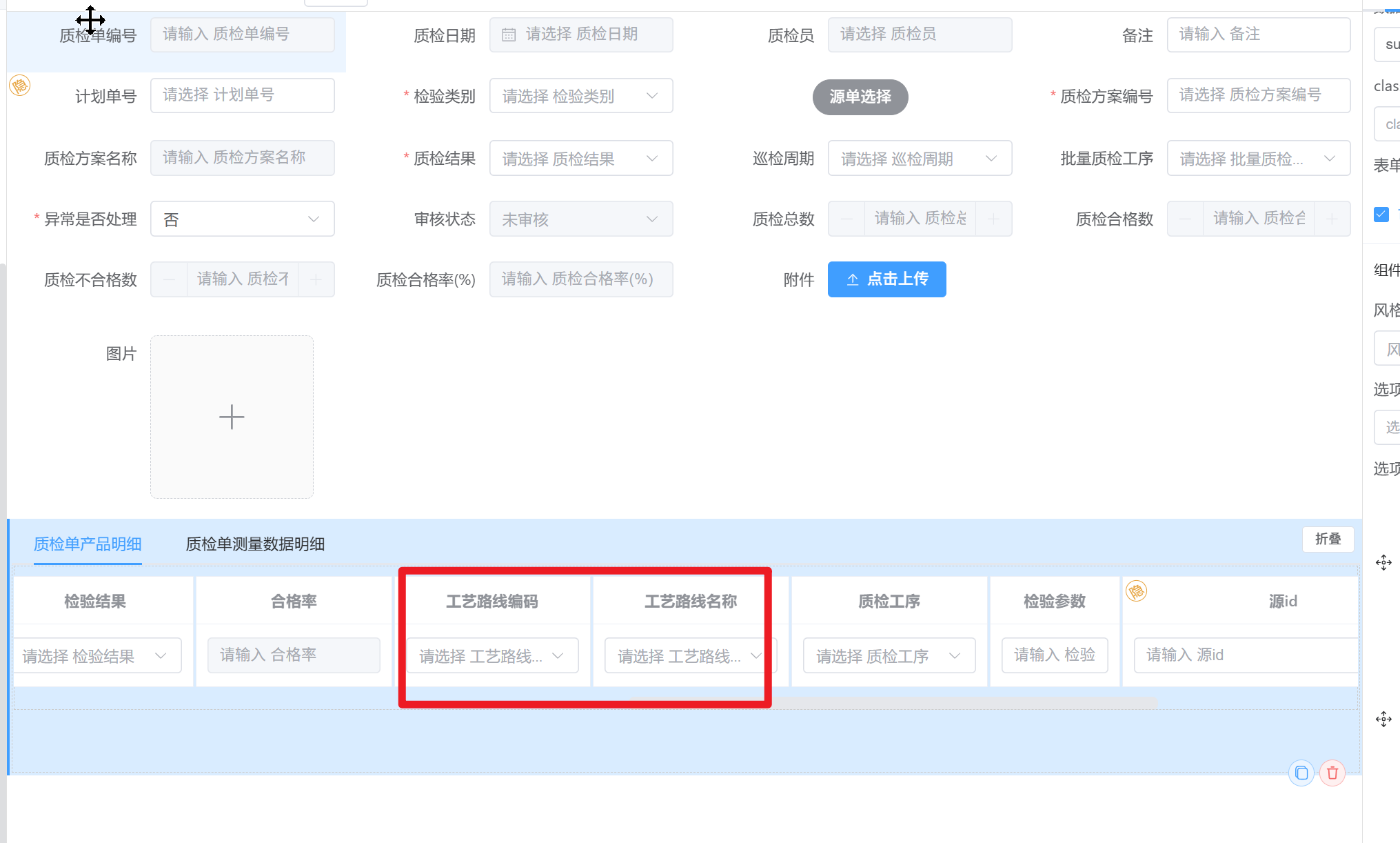 这种列表中,通过工艺路线和工艺路线名称来实现不同的质检工序下拉,列表每一行填的工艺路线编码都不一样,怎么实现呢