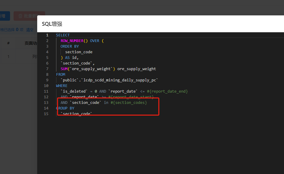 使用java实现比较好一点,暂时不支持自动将111,22,33传过来的字符串进行切割为list放到in