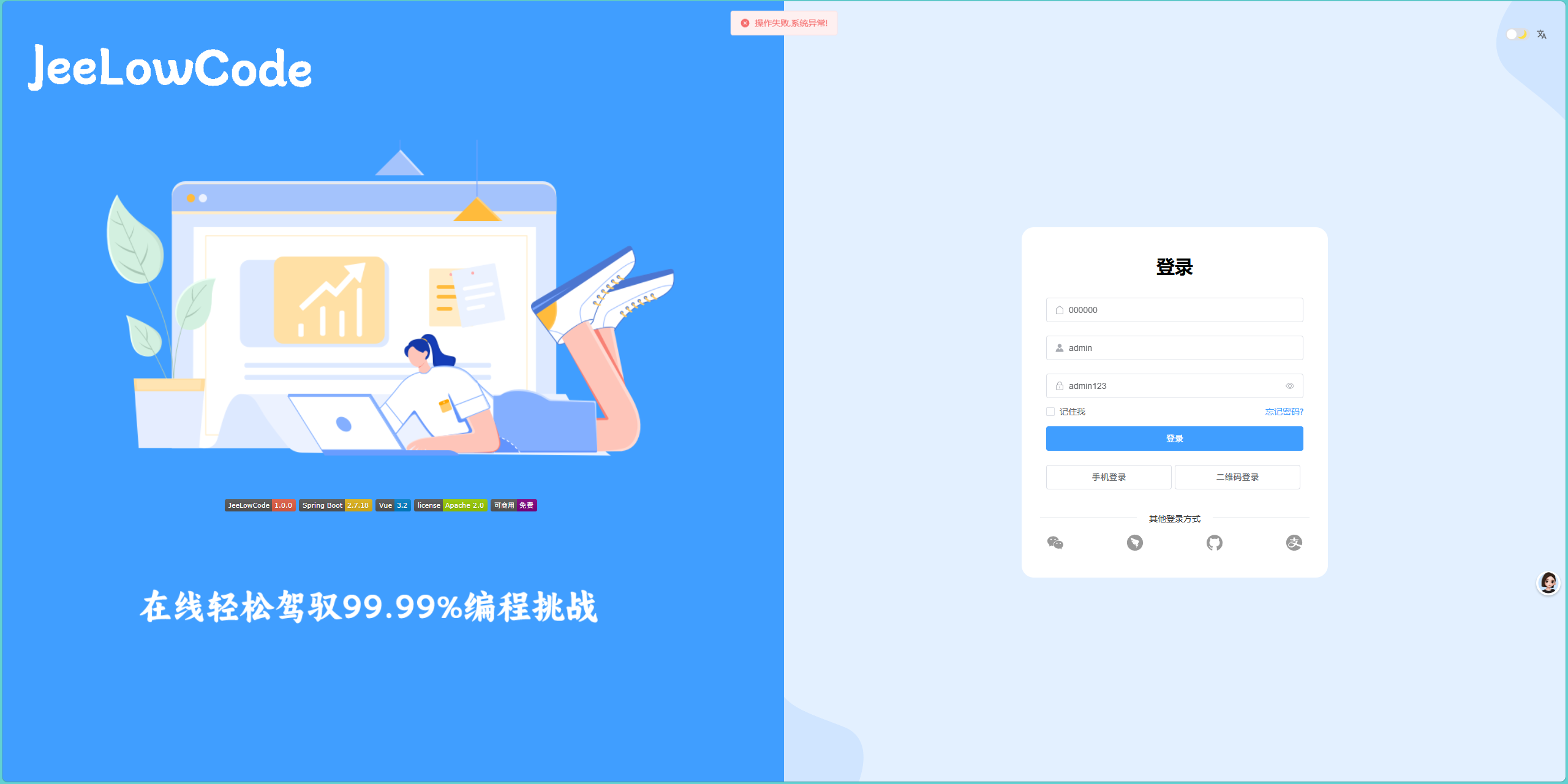 操作失败,系统异常