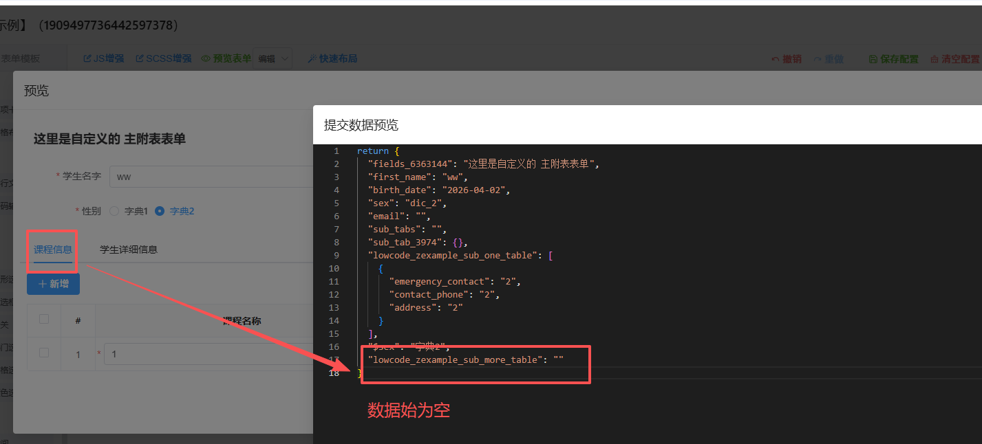 自定义表开发,一个对多时,提交时数据始终为空,这是BUG?