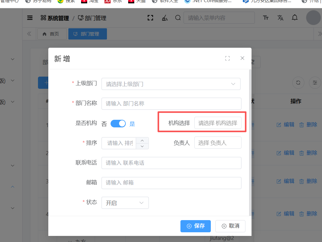 部门 新增 弹框 增加了 机构选择 控件类型为表格选择框 ,希望可以调用表单开发中的机构表的数据