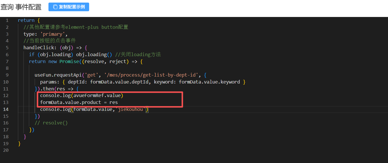 在自定义表单中通过查询按钮获取新数据后对表格重新赋值,但是没有效果