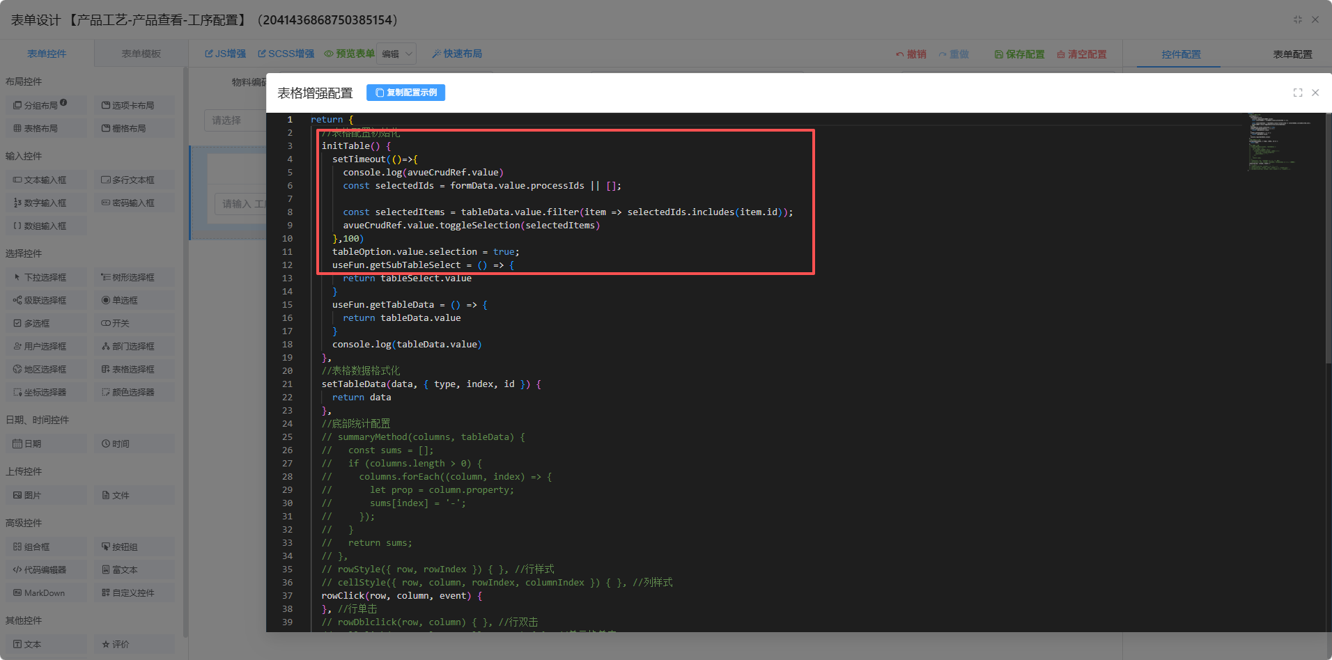 在表格布局增强中定义勾选方法