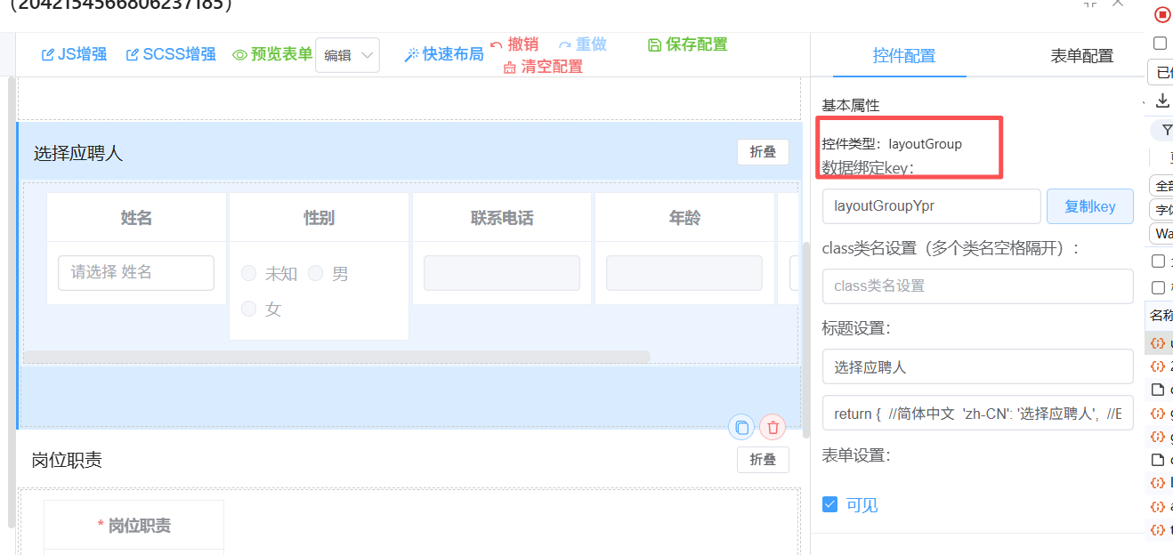 表单设计 控件类型:layoutGroup 希望通过js 增强 控制显隐