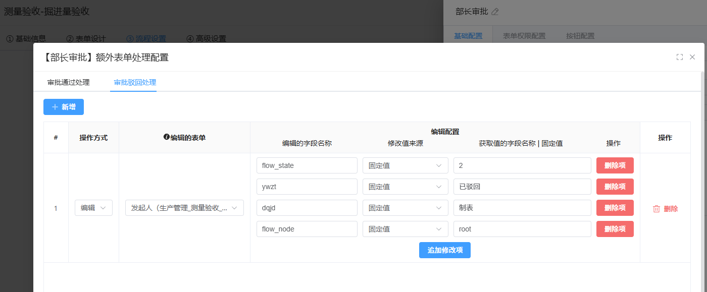 审批通过和驳回都配置了额外表单配置,更新表单中的字段数据,审批通过可以成功,但驳回不更新