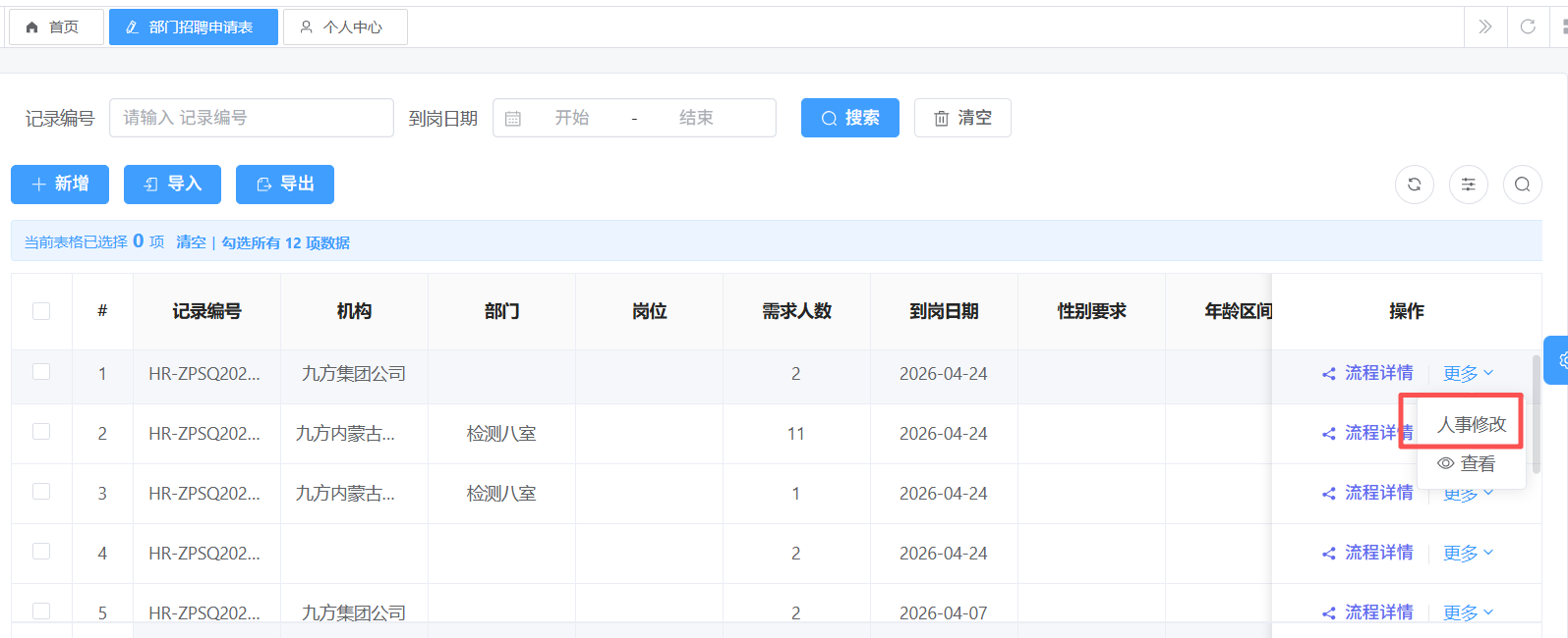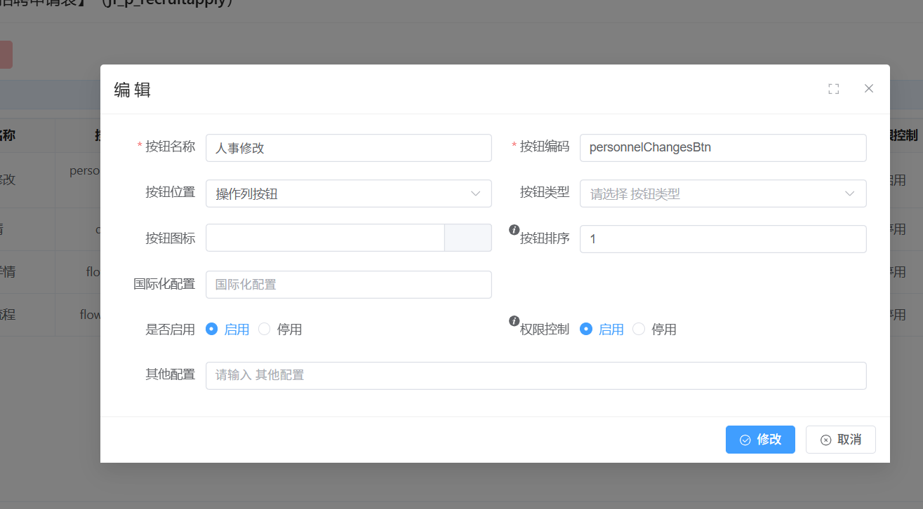 自定义按钮 “人事修改”