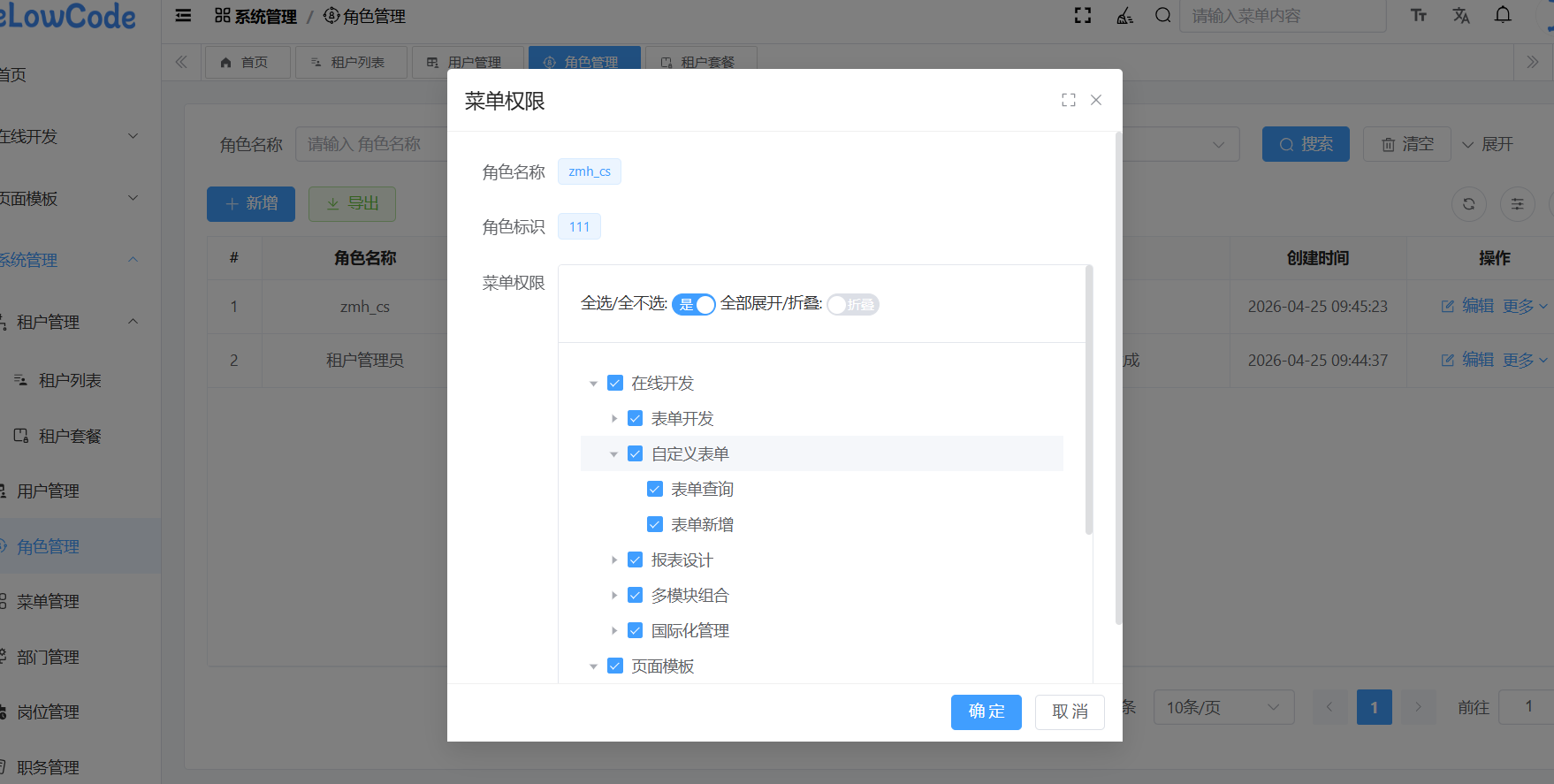 该租户创建角色的权限的时候 : ,只能选择该租户套餐规定的权限