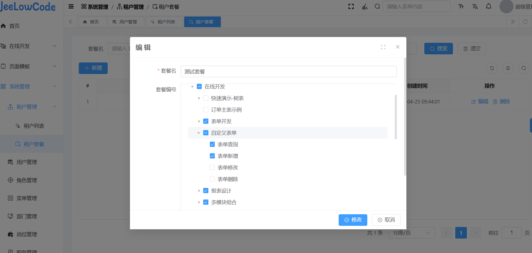 不同租户对应的不同的租户套餐