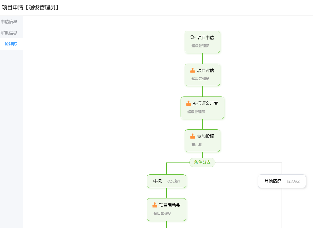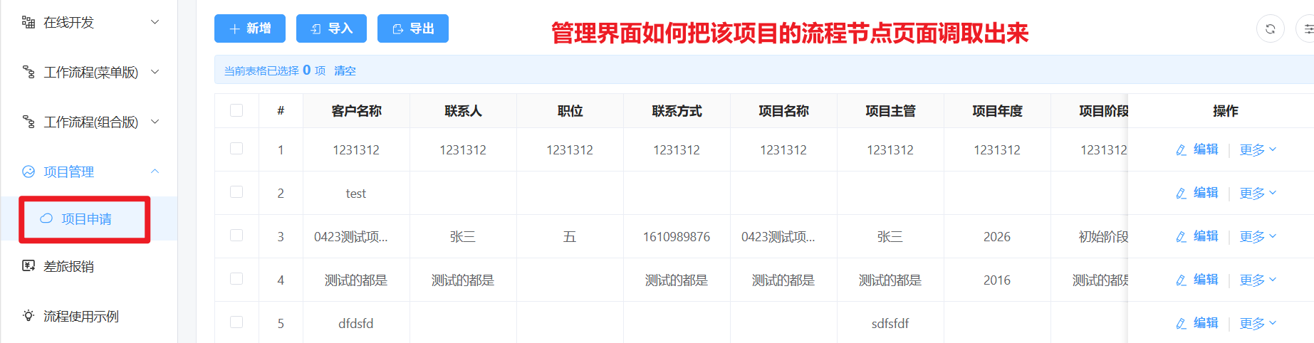 项目管理界面,新增项目时可以发起对应的流程,但是新增完了,在项目管理界面无法查看流程。第二个图是项目管理页面,第一个图是流程页面。