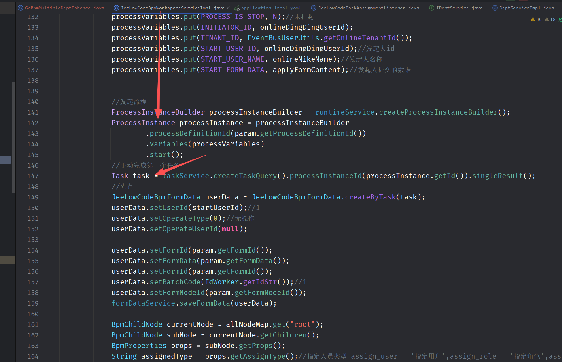 .start();的时候下一步的task就会产生空指针异常,但是如果将增强的方法写成一个接口不在流程过程中调用就能正常生成流程,这个怎么排查呢,到task这里下面都是class了没法打断点了