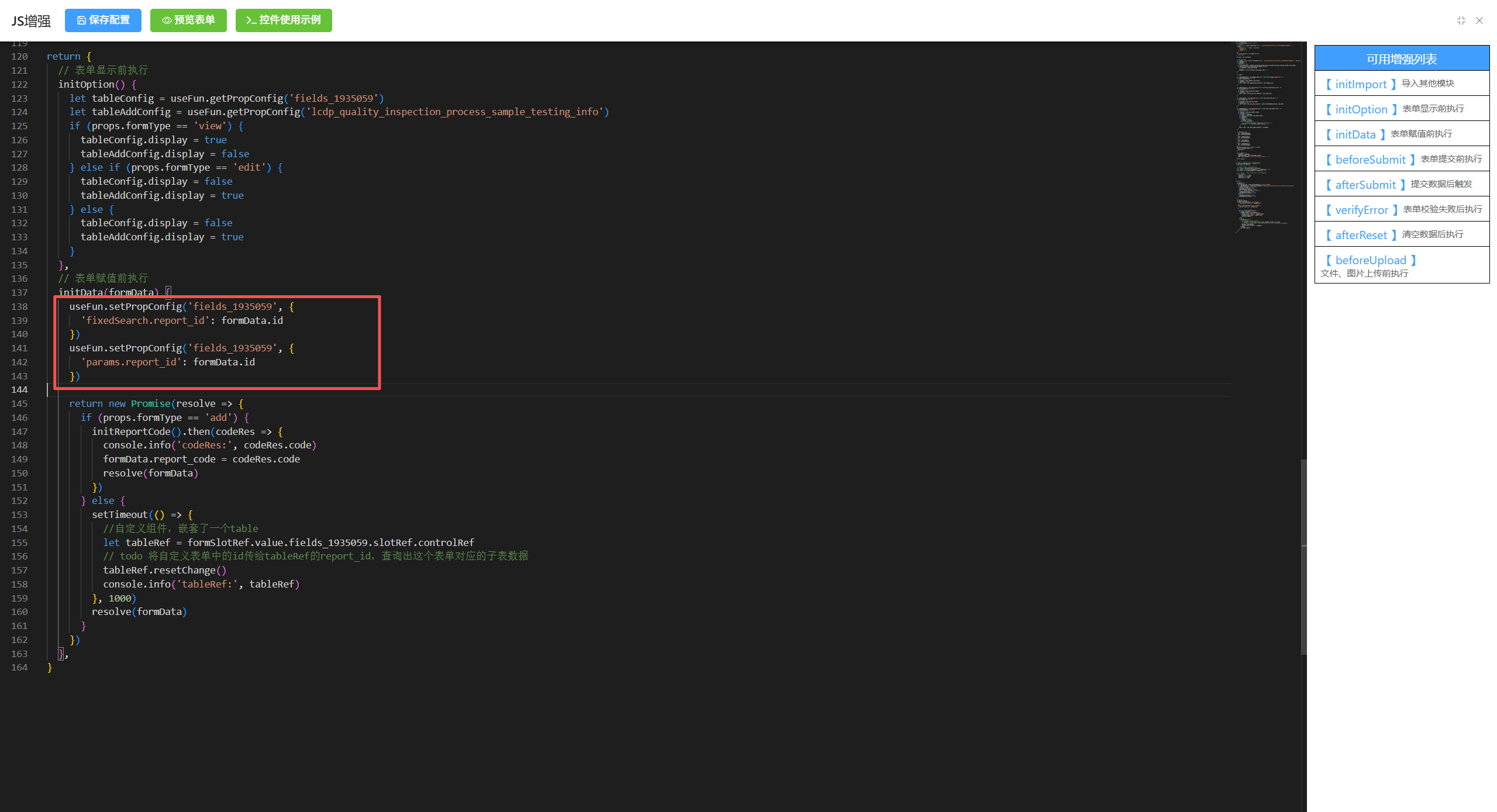这个我自定义表单js增强中应该怎样写呀,能给个例子吗。