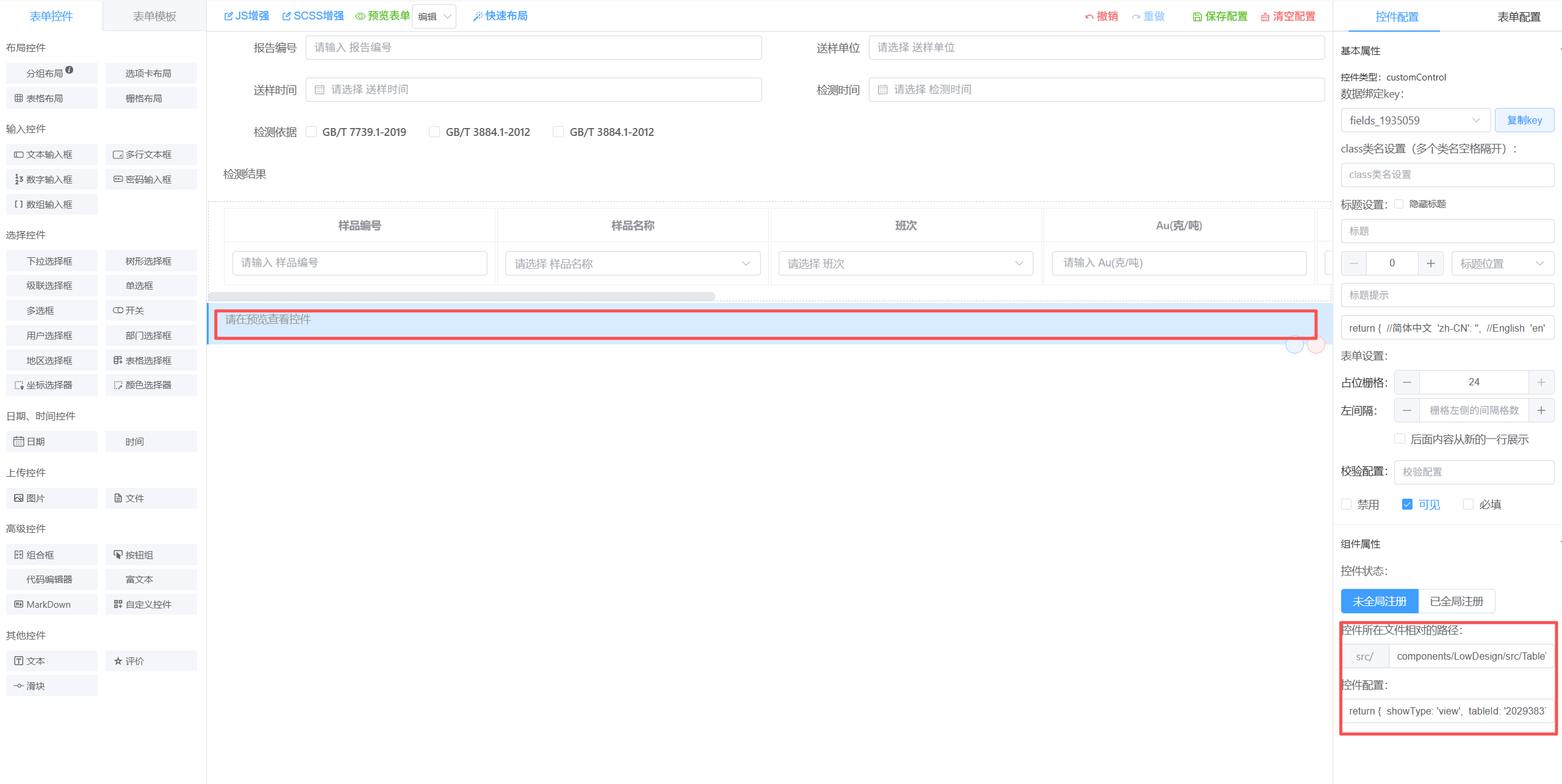 我查询的时候嵌入的是自定义控件,然后这个自定义控件是子表的表格,不是用的上面那个表格布局中的表格,表格布局只在新增编辑的时候用,查询的时候我需要用到多表头和单元格合并就用的自定义的控件,现在怎样把这个主表详情的id传到自定义组件中,然后我根据主表id查询子表。